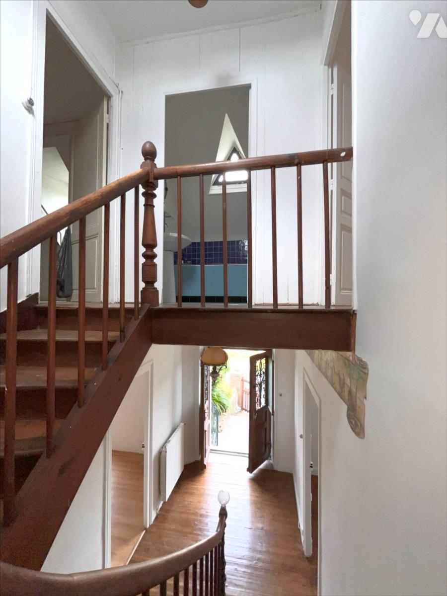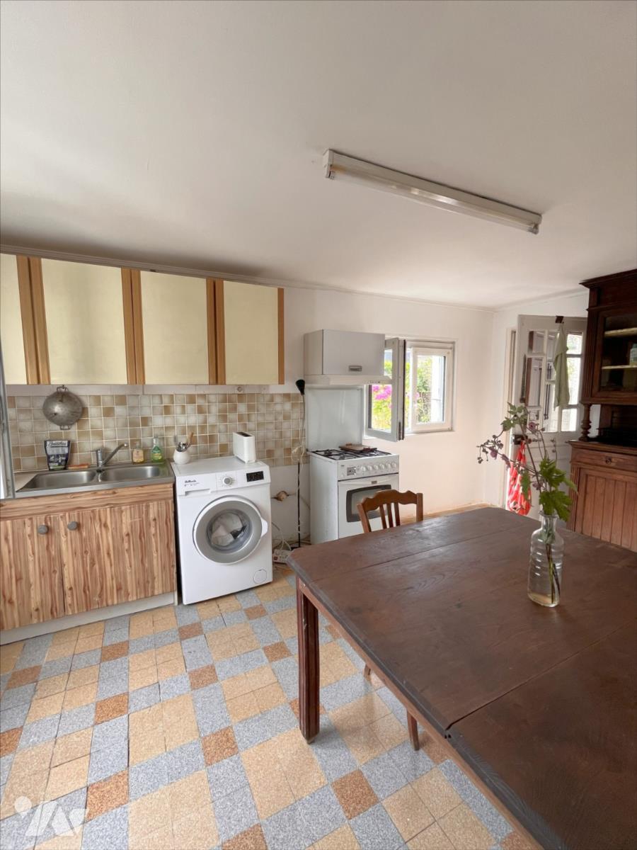 Une maison en pierres couverte en ardoises, composée :Au rez-de-chaussée : d'une entrée, d'un séjour avec cheminée, une chambre, d'une cuisine et une buanderie.A l'étage : une salle de bains, deux chambres avec chacune un grenier.Sous-sol.Garage et cabanon.Jardin