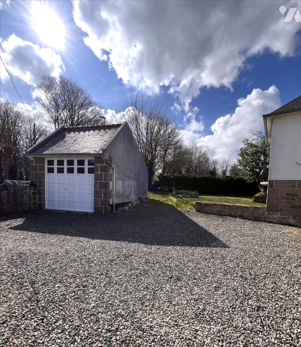 A l'extérieur, un garage de 26 m² construit en parpaings avec parement en pierres et sous toiture comprenant une mezzanine